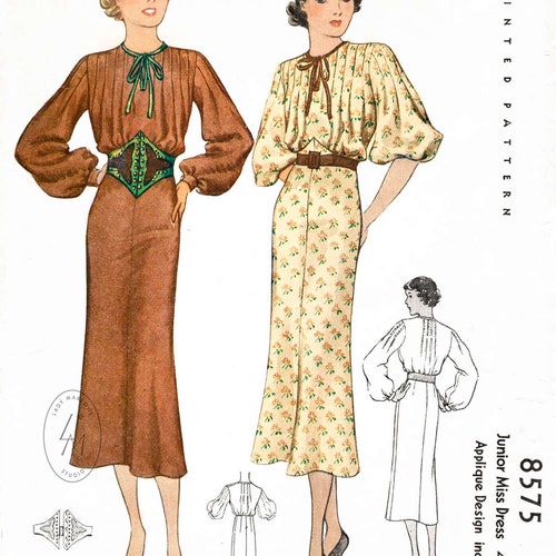 1930s 30s Dress Vintage Sewing Pattern Peasant Blouse Dress Etsy